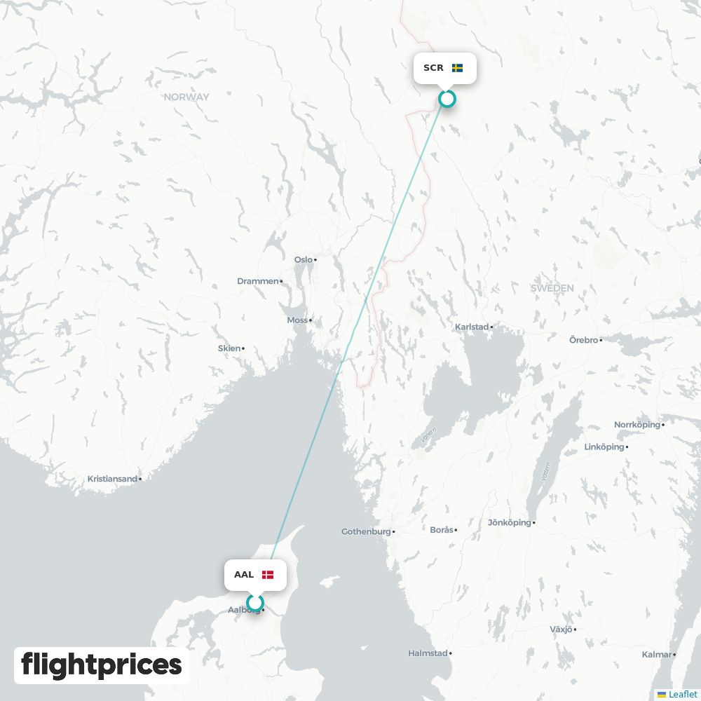 Et hurtigt overblik over Aalborg (AAL) til Sälen (SCR) — laveste og typiske priser, prisinterval, billigste måneder og ugedage, selskaber på ruten samt normal rejsetid fra Danmark til Sverige.