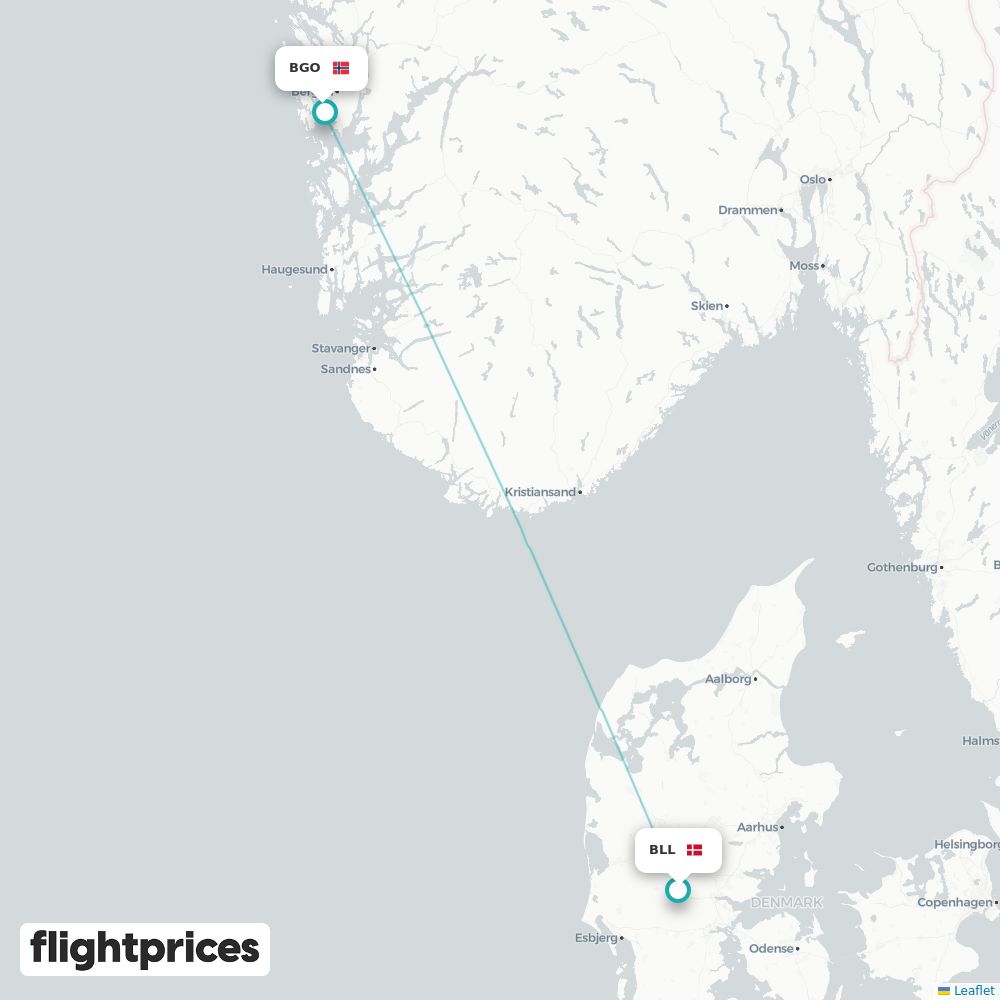Et hurtigt overblik over Billund (BLL) til Bergen (BGO) — laveste og typiske priser, prisinterval, billigste måneder og ugedage, selskaber på ruten samt normal rejsetid fra Danmark til Norge.