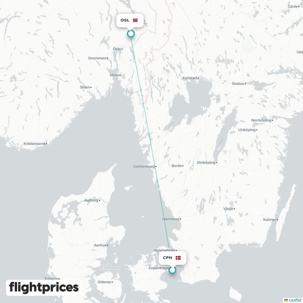 Et hurtigt overblik over København (CPH) til Oslo (OSL) — laveste og typiske priser, prisinterval, billigste måneder og ugedage, selskaber på ruten samt normal rejsetid fra Danmark til Norge.